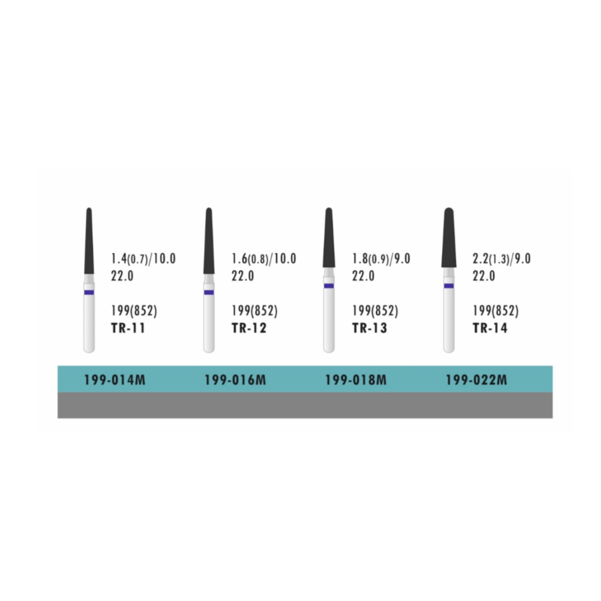 یک فرز الماسه با طراحی نوک مخروطی و انتهای گرد است که برای تراش دقیق و فرمدهی سطوح زاویهدار و منحنی دندان به کار میرود. این فرز به دلیل شکل خاص خود، امکان دسترسی راحت به نواحی دشوار و کنترل بهتر در حین کار را فراهم میکند.