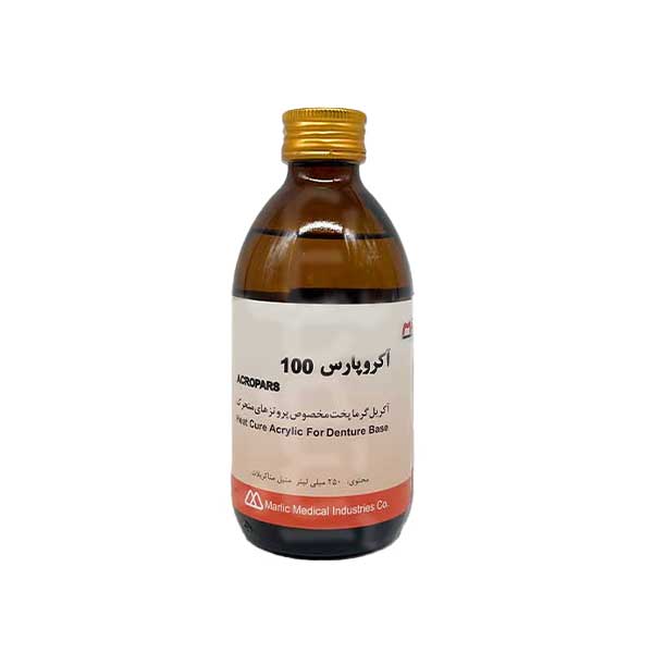 اگر قصد خرید مایع آکریل پختنی آکروپارس را دارید پیشنهاد میکنیم در ادامه همراه ما باشید، مایع آکریل پختنی آکروپارس 100 یکی از محصولات باکیفیت و پرکاربرد در صنعت دندانپزشکی است. آکروپارس این محصول را برای ساخت پروتزهای دندانی طراحی کرده است. این محصول با ترکیب با پودر آکریل، پایه اصلی ساخت پروتزهای کامل و پارسیل را تشکیل میدهد و ویژگیهای منحصر به فردی دارد. همین مسئله باعش شده است که بسیاری از آن دندانپزشکان و تکنسینهای دندانپزشکی از آن استفاده کنند.